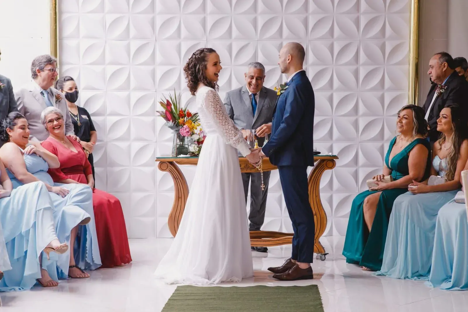 No dia do casamento tudo será assinado com o celebrante que entregará um termo para ser trocado no cartório pela certidão de casamento.