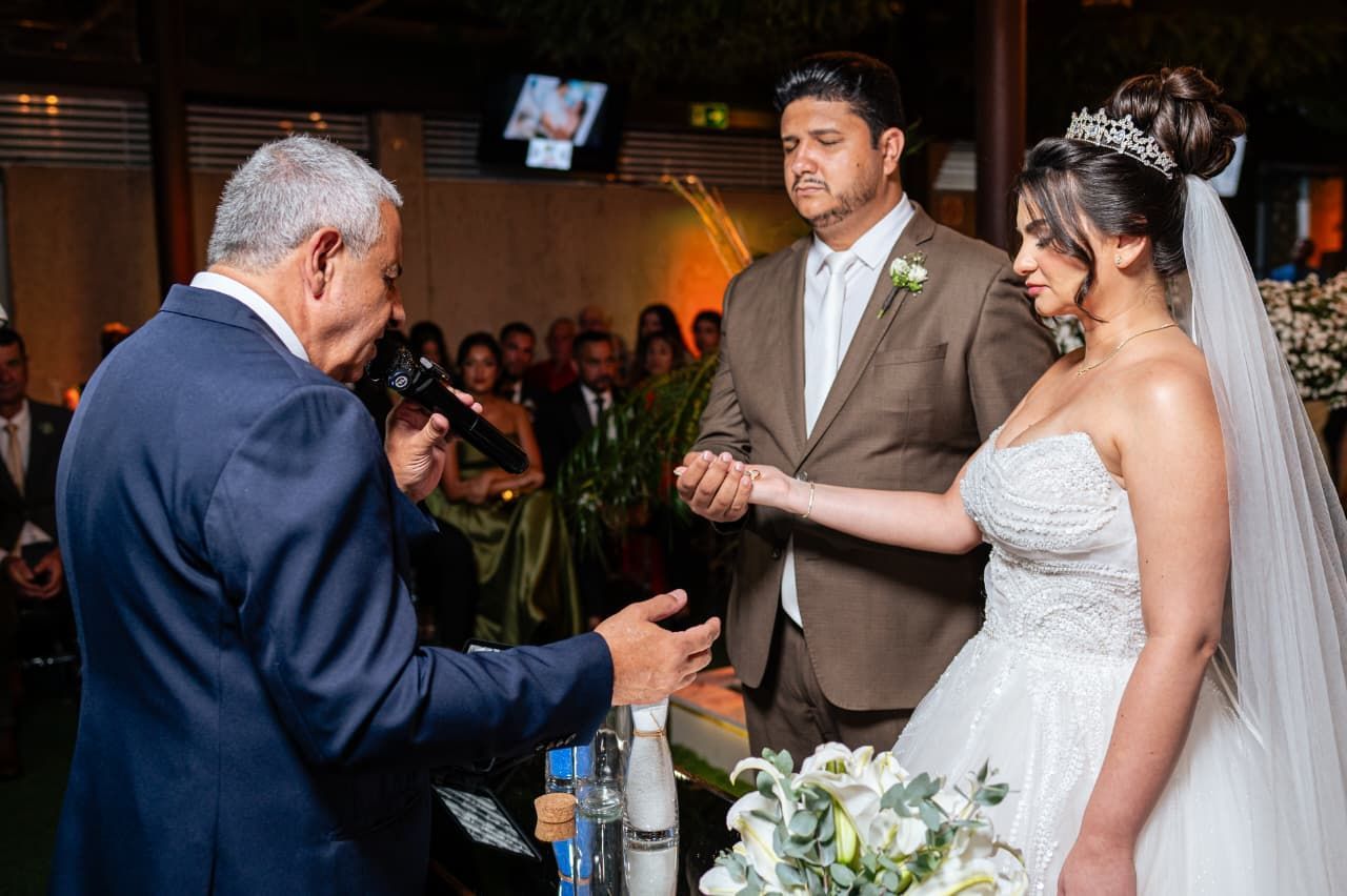 "Ficamos encantados com a personalização da nossa cerimônia. O Rogério foi atencioso e nos ajudou a incluir simbolismos que representavam nossa história. Foi um dia inesquecível!"